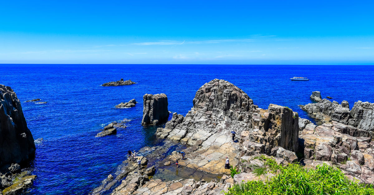 福井県坂井市にある東尋坊は、日本海に面した断崖絶壁が続く景勝地として有名です。風と波が造り出した荒々しい自然の造形美は、まさに「地球の力」を感じられる場所です。
